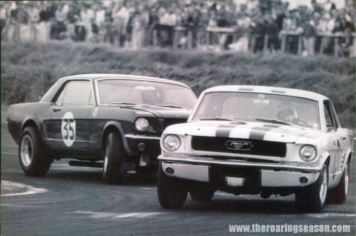 Two significant Mustangs. This is Paul Fahey leading Red Dawson (ex-Segedin). This was the third and final race season for the Segedin/Dawson car.