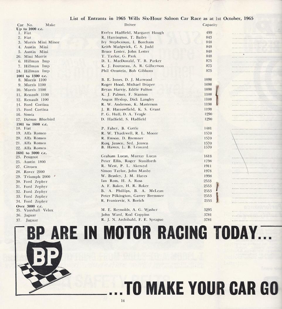 Milan, Many thanks for your confirmation of the 65 and 66 winners. That would explain why Tony Shelley is shown in his car at the end of the 1966 video clip. The Rod Coppins thread says he won the 66 race which I didnt think was correct but had no way of proving it. Thanks to your Jaguar ad it is clear Rod won the 1965 race not the 1966.