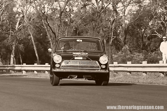 Here is Peter Manton, giving the Cooper S and absolute flogging, as he tries to stay ahead of Beechey.