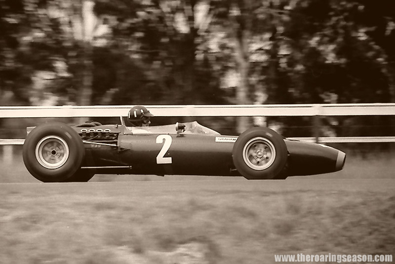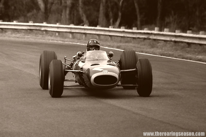 Frank Gardner, in the Mildren run Brabham, on his way to a well earned 3rd place finish.