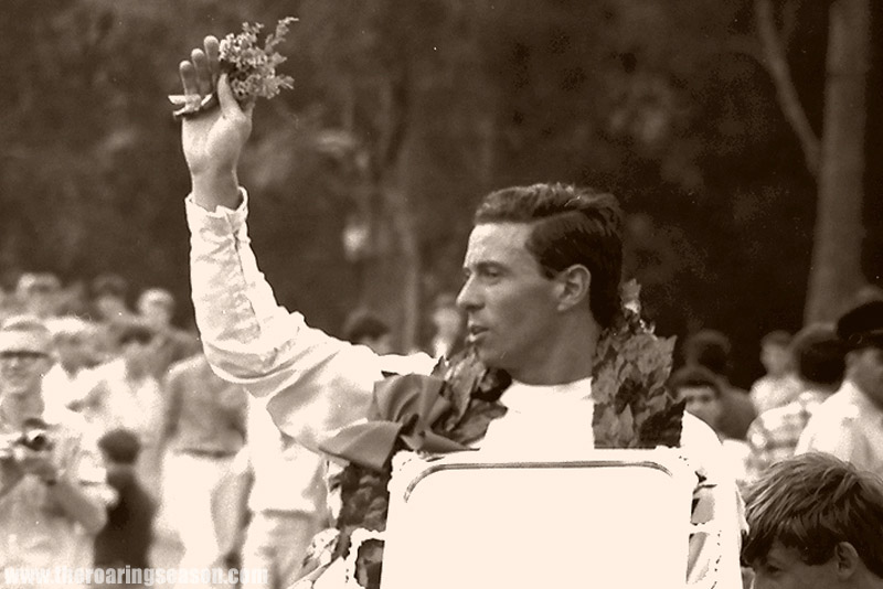 Here is pole man and eventual race winner Jim Clark, in his Lotus, while in behind is young Kiwi racer Dennis Marwood, on his way to an excellent 10th outright in his Cooper.