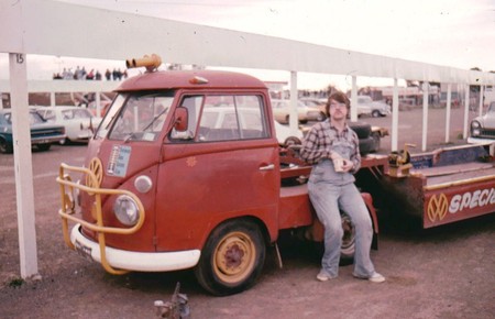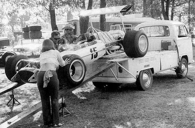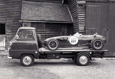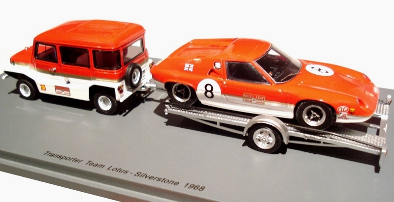 It is remarkable to see a Mini Moke towing a race car. I don't think I have ever see one tow a box trailer let alone a Lotus 47 race car.