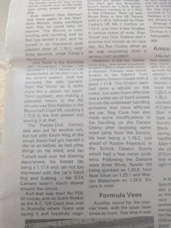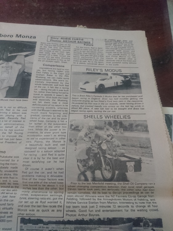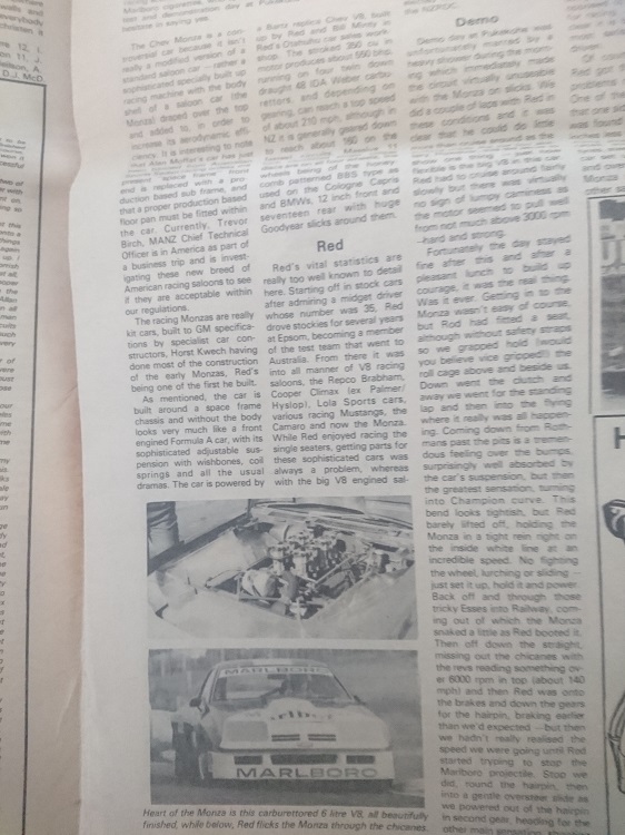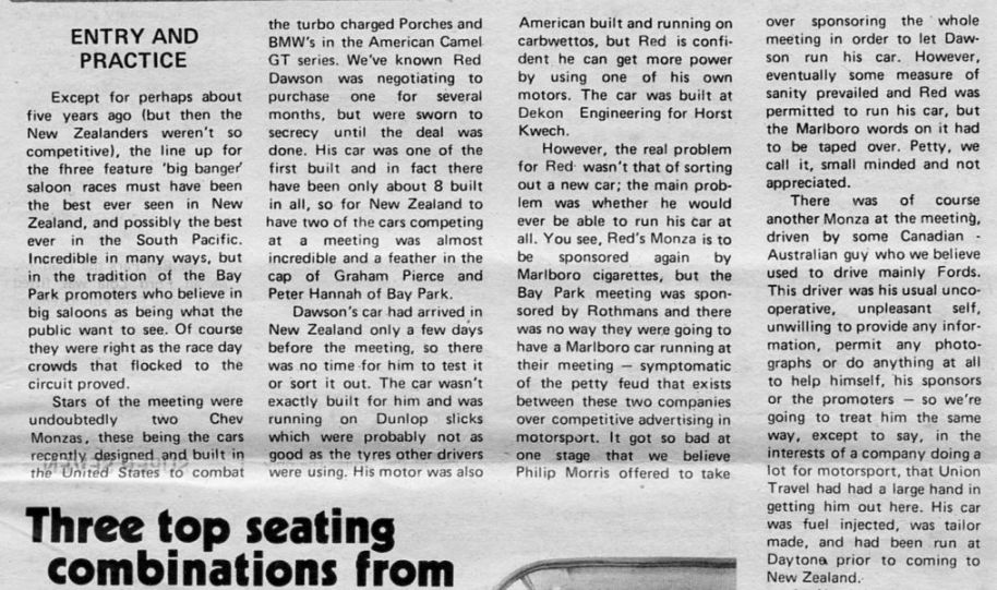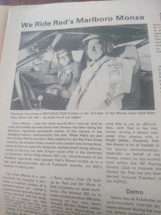 John I haven't seen that issue of Motorman, but as you say, a late season colour change. Dawson purchased the Monza off Canadian racer Maurice 'Mo' Carter, who always raced red cars with white details, and when the Monza arrived in New Zealand, it only required Marlboro decals and a switch to Dawson's #35, and it was good to go. Everything else about the colour scheme was as raced by Carter.