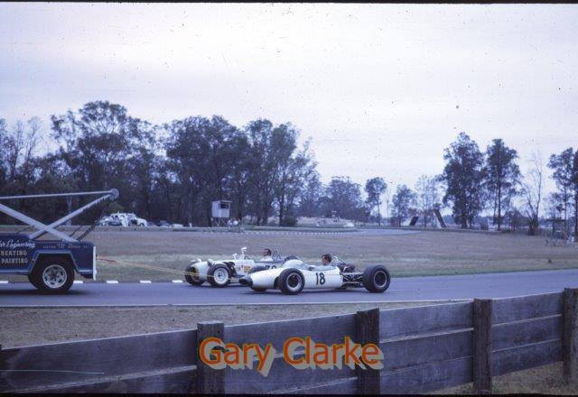 In the Vees we have two Rennmaxes leading a Revell, probably Phil Revell. I always used to look at that brace on the roll bar of the first Rennmax and wonder how sound it was from an engineering standpoint, but I don't remember whose car it was.