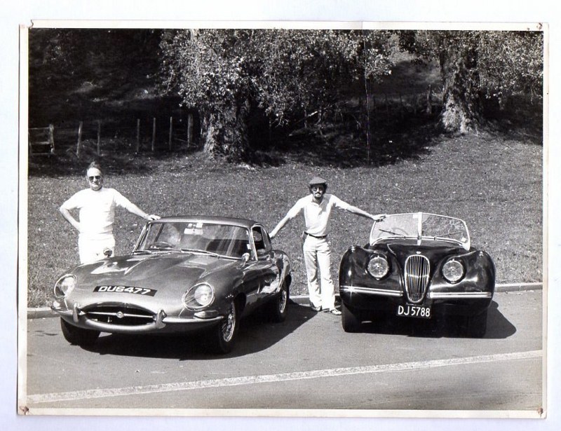 " Just came across this old picture taken in Auckland in 1975. I'm with my ex Archibald XK120, and with with me is then Auckland JDC President, Alex Bright with his E-Type. ".