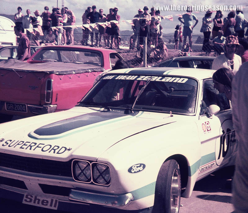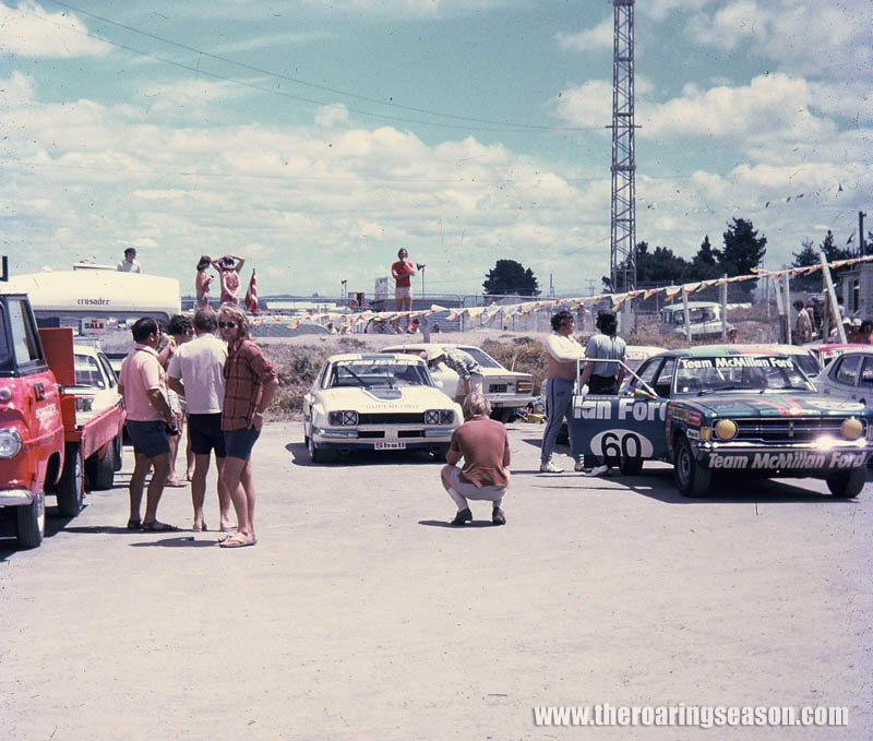 Looks like Bay Park pits? Alongside the Fahey Capri RS2600 is the Team McMillan MkIII Cortina production racer.