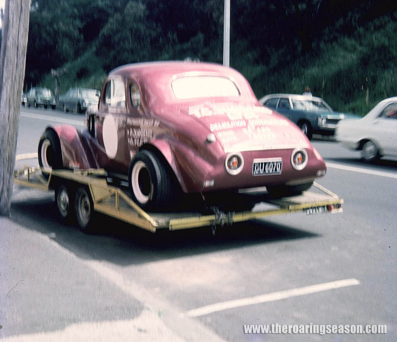 Steve- think you will find that this was the Peter Jones Panel and Paint A40 from Howick. this car appears in Milans b/w pix of George Bunce in the Monaro from 1975. Did Mike Moore end up with this?