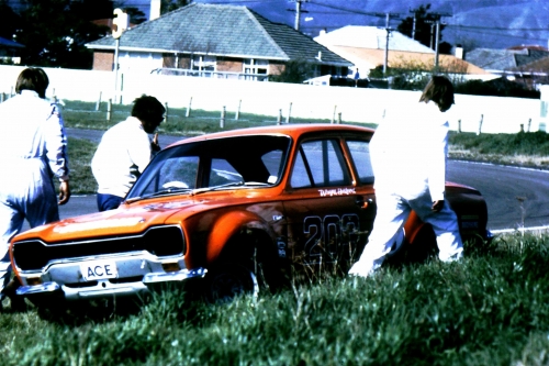 Sager bought the car off Blackberry. then in 79 repainted it. 1980 it was sold to Mike Moore in Palmy. when it first appeared as the Frist car, it was referred to in MotorAction as the ex Huxford Escort. not sure where it went after Mike Moore. You posted 2 pics of the Huxford car on your Scrapbook Cuttings thread Rod, this is the better of those 2, do you have another one? My understanding is that Huxford built this car, that is based on something I vaguely remember Dave McKinney saying on another thread.