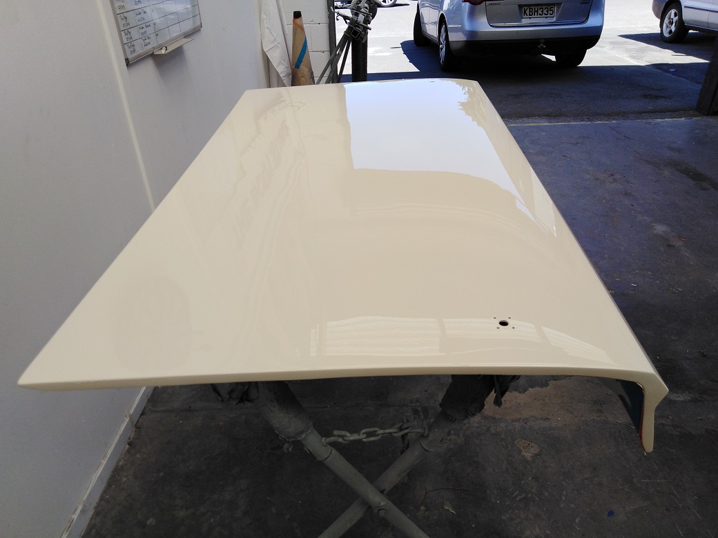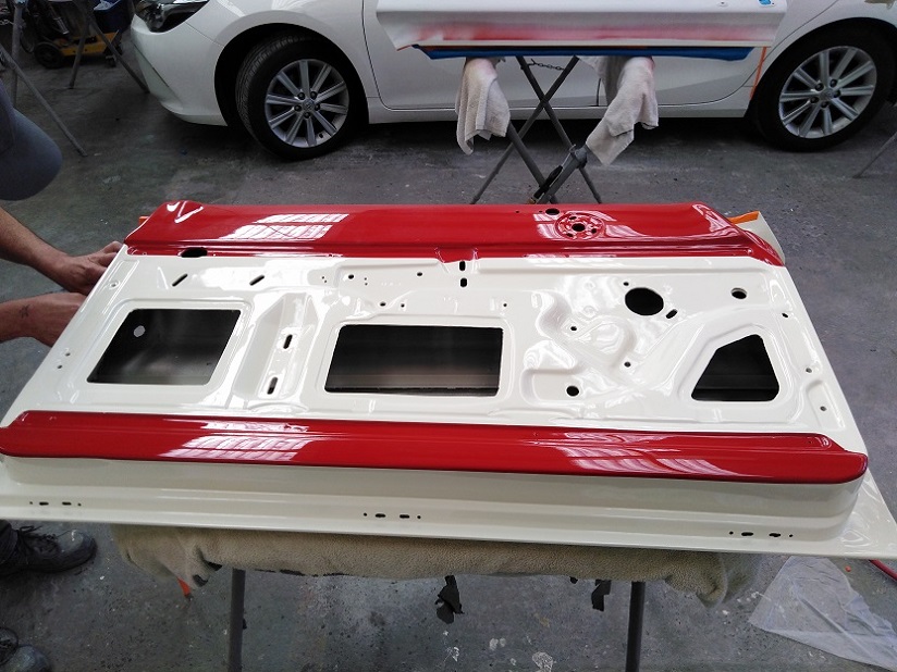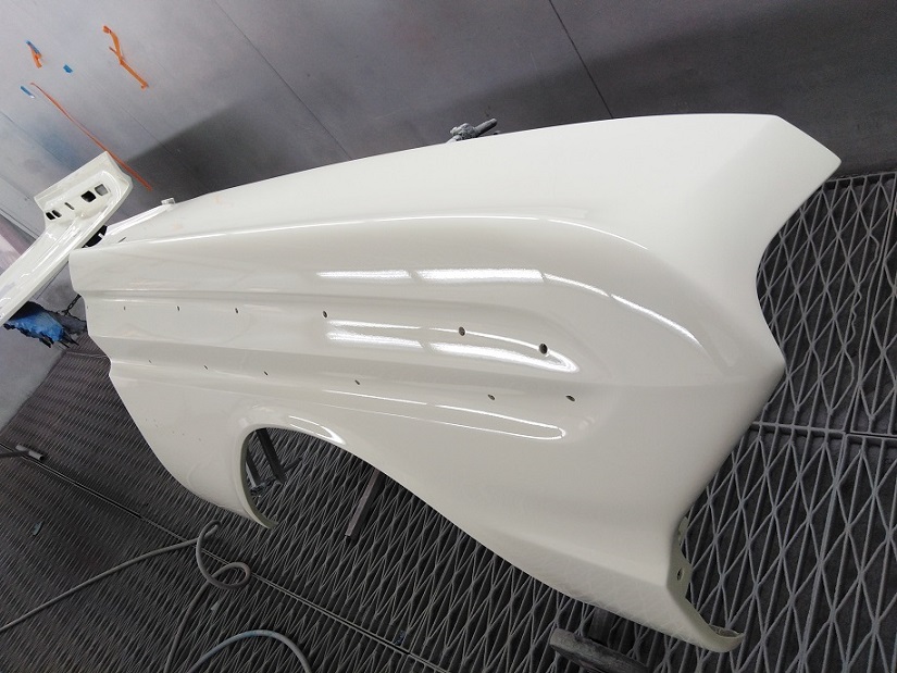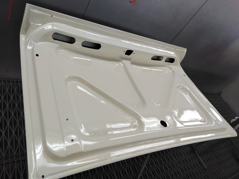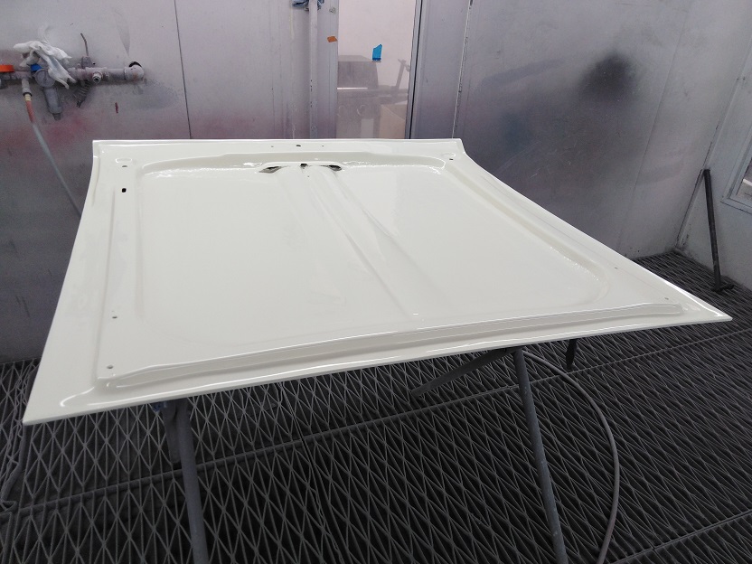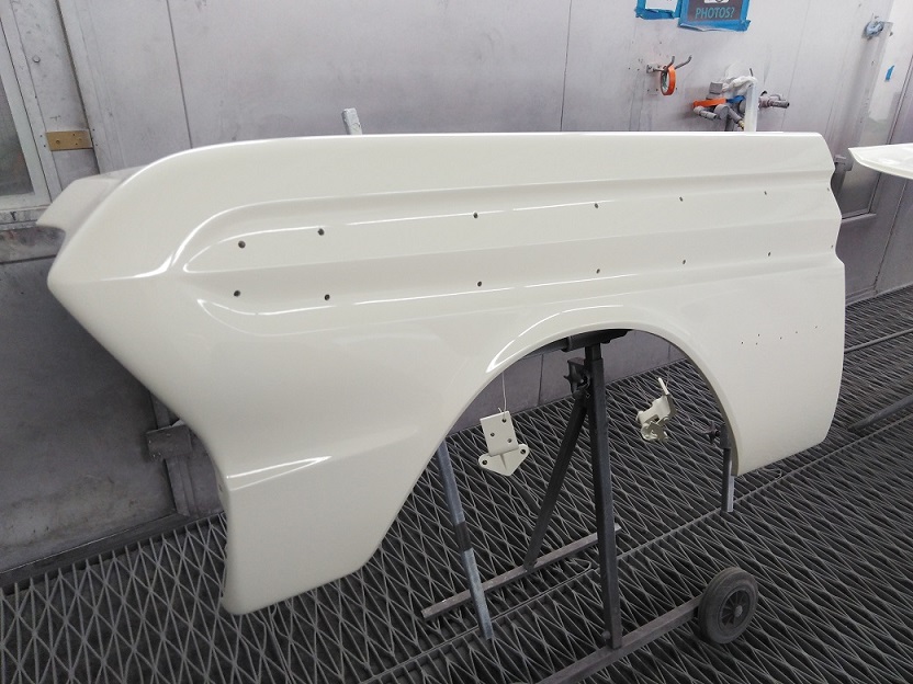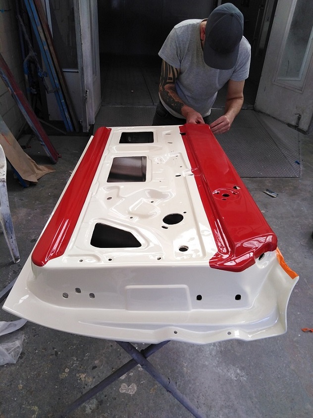 The Wimbledon white is a very creamy colour and certainly fits in the period. I watched the first coats being applied today on the body panels. I am aiming for a very "original" look with the paint.