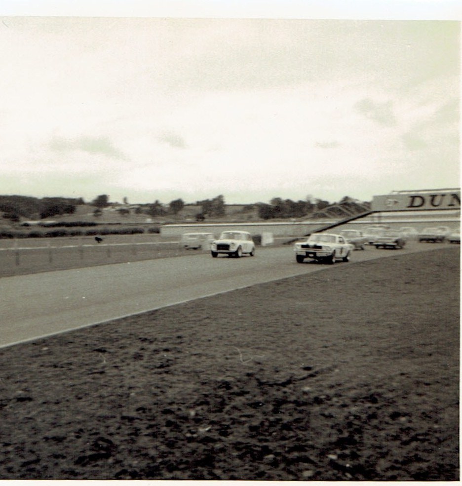 From Pukekohe - the Grand Prix meeting 1967 [ I thought it was 1968 as marked on my photo - but that was done many years later ] - just before the his big offf !! - John Larry Lawton photo B and W - JLL says 1967.
