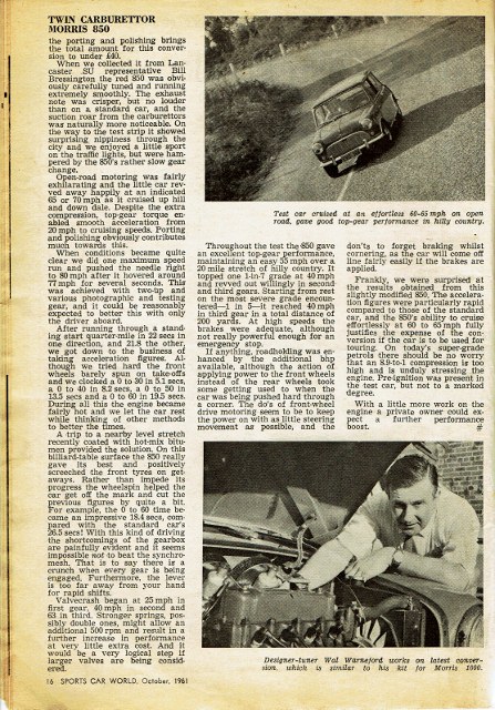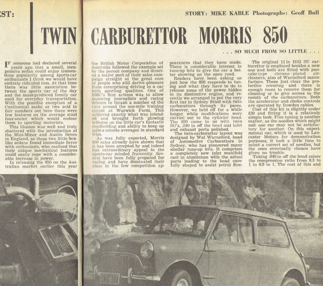 Morris 850 with twin SU's -SCW Road Test October 1961