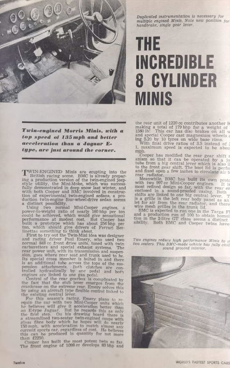 To come a Test of a Highly Modified Mini 850 from the era that had a top speed of 105 miles per hour in old money !.