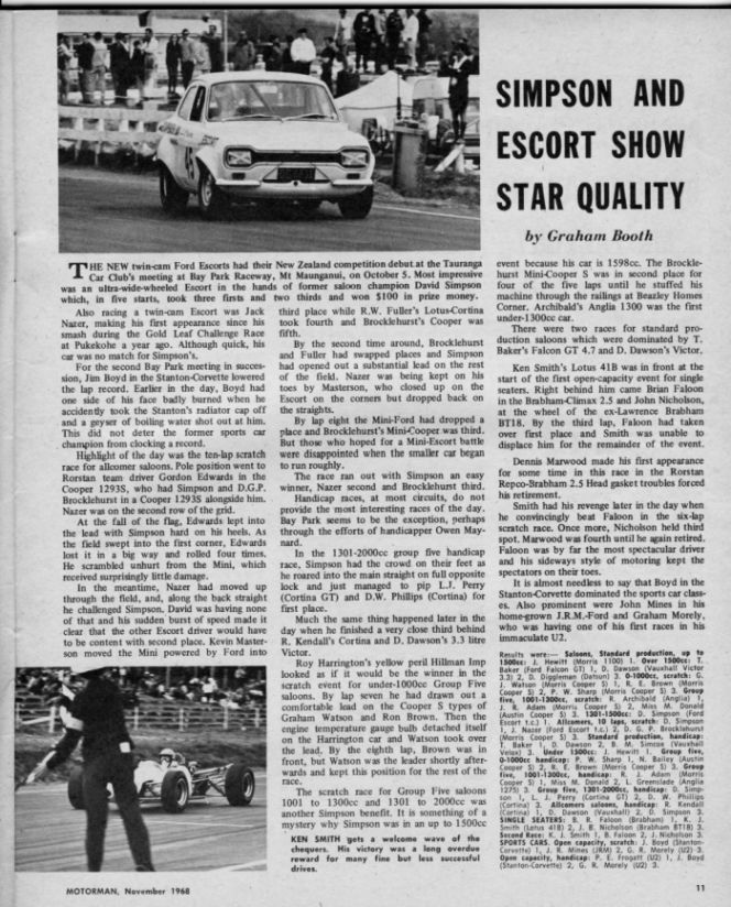 The next meeting at Bay Park was a Gold Star event on November 17 at which there were a number of Escort Twin Cams competing including one numbered 45 and driven by R. Uden from Tokoroa.