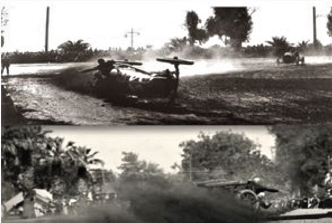 1914 as the race leader John Marquis in his Sunbeam, rolled after a tire blew rounding Dead Man's Curve amazingly the occupants were not killed and Marquis was pulled from the wreckage and lived to drive another day.
