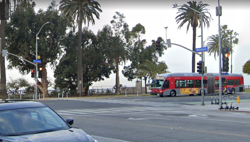 The same corner today at Wilshire Blvd and Ocean Avenue in Santa Monica is not quite as exciting as it was in 1914.