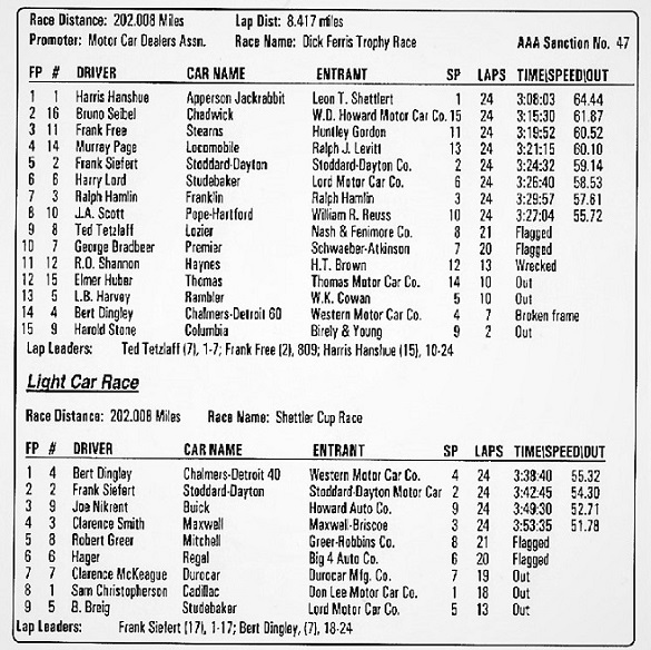 In 1909 before it became a popular track and European cars arrived, Santa Monica hosted some early US manufacturers as seen in this listing of the race results.