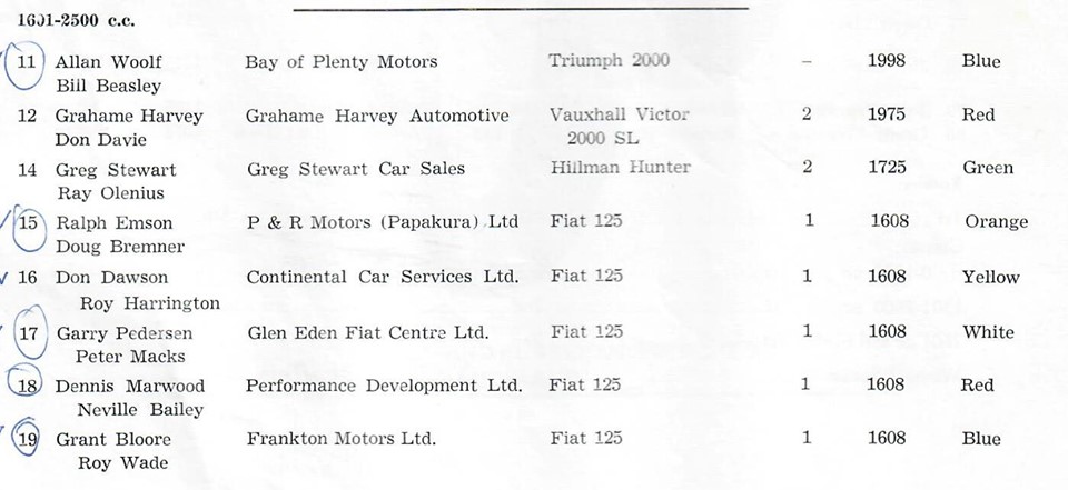 have this partial list from the event - not from the programme, must have been an " Official " list - used by Timekeepers and Other Officials. - List from Kelvin Brown archives, thanks to Milan Fistonic, I have this copy.
