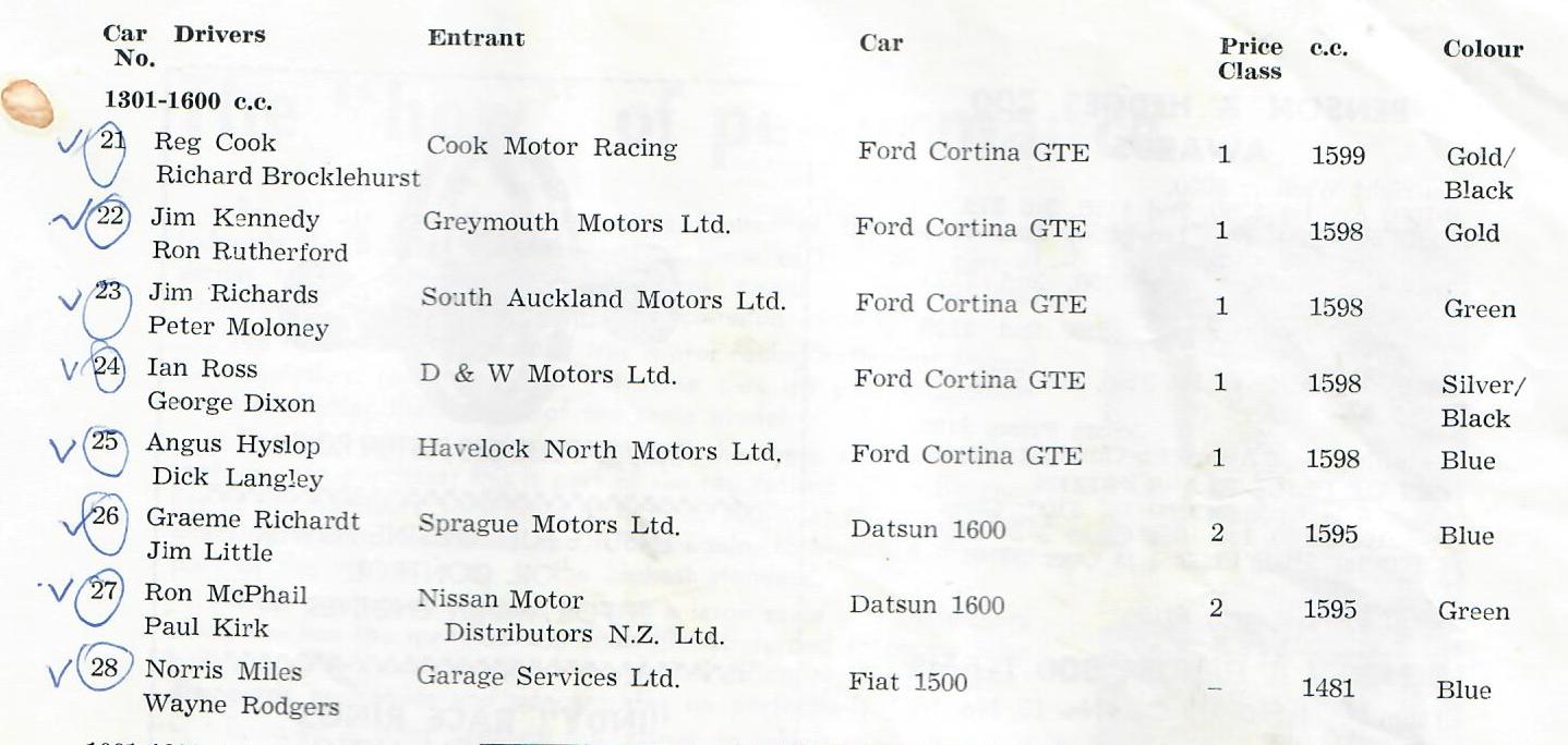 GP meeting January 1966 Allcomer entry lists; D A Simpson was in a Lotus Cortina not the Lotus Anglia
