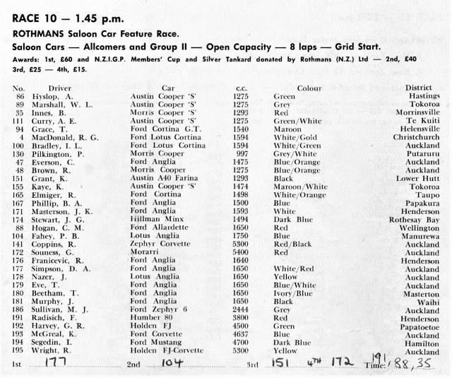 Gold Leaf 3 hour Race Pukekohe October 1965 - more from Ian Tilley