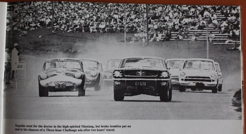 The Segedin [ co driver D Simmons ] Mustang and a Daimler SP250 - think David Oxton ** see comment Trevor Sheffield believes it is him - he and Bill Kelly finished third, a place ahead of the Mustang.
