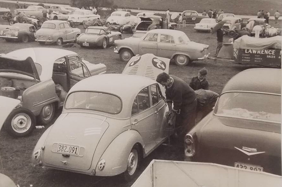 The Ron Brown Morris Minor in foreground - RIP Ron Brown, who passed away recently - Alan Boyle's best Mate since primary school and fellow team member of the " Evweld " Racing Team in 1966 in their Mini Coopers