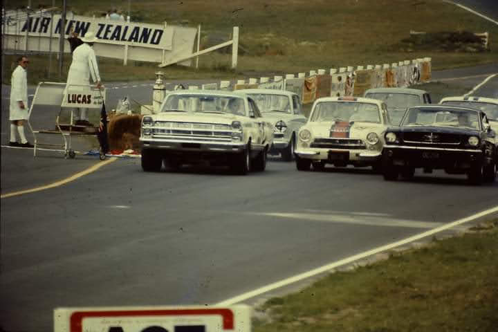 This is the start with, I believe you, tucked in behind David Oxton and the Mustang in the centre - from the 1966 " Shell Book of New Zealand Motor Racing " by Peter Greenslade and Euan Sarginson [ Euan Sarginson photo ]
