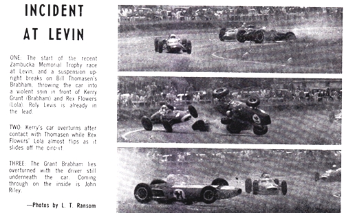 On a prior occasion I had driven down to a race meeting at Ohakea with Laurie and his then partner in the B4 V8 and with my wife in my ACV8. Along the way he tried me out for maximum speed and he had the edge with his Hogan heads and tuned engine. However when it came to scrutiniering the old B4 was turned down. One obvious fault I recall was a loose front bumper, but the bolts were rusted up solid and Laurie claimed that it was safe as there was no hope of it falling off. He was not a happy chappy.
