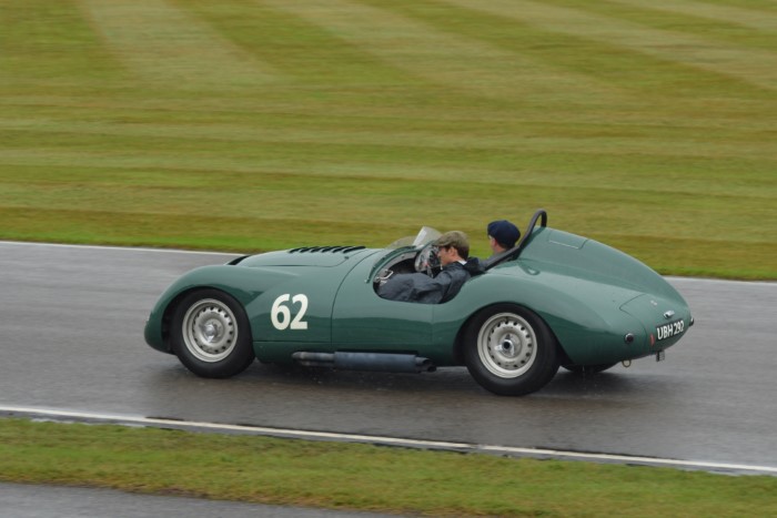 The first was one of the most talented and spectacular drivers usually in a Frazer Nash, but this time, driving the monoposto Frazer Nash. Opposite lock coming out of the chicane even on lap one in the wet.