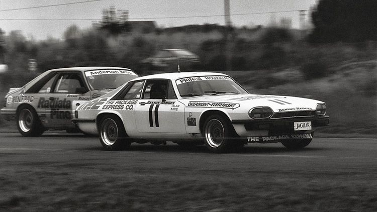 The Prince-Hourigan XJS now racing in classic racing. Recently restored by Angus Fogg and owned by Gary Johnstone in Christchurch. Gary had the car at Highlands Park in February this year where it suffered an 'engine malfunction' !!!!! The engine had not been touched during the restoration as it appeared to be ok. However it clearly wasnt as good as everyone thought, so is now being completely rebuilt and reassembled in the AFR workshop. Striping the engine after so many years, proved to be a character building exercise, with studs frozen in the heads and block.......I think the big hammer came out a few times, accompanied by numerous cans of Lion Red.......not for the studs but for the operator. Before the engine trouble, Angus had driven it at a number of Classic meetings, and described the handling as challenging ! It was also up to its old tricks of overheating, something that hopefully will be addressed during the rebuild. I have to say it has a gorgeous sound........