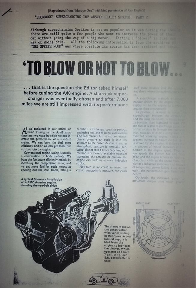 Just some random stuff on Supercharging a BMC A series motor for a Sprite or other car.