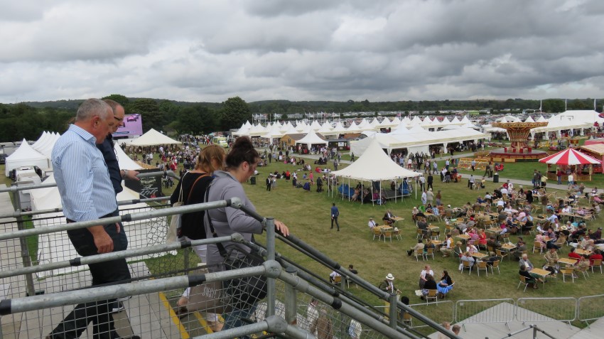 The view looking out from the pedestrian footbridge into what was referred to earlier as outside the circuit, but where a current ticket was still required. Big screen just in view to the top left of pic 1.