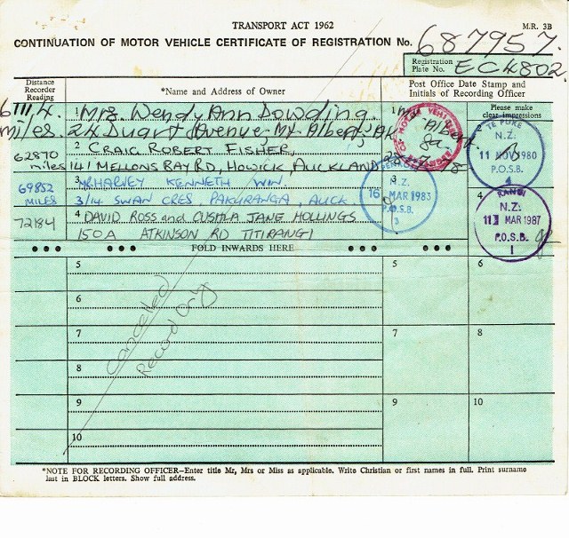 The car passed through many hands from arriving in NZ to leaving under Ross's ownership in 1990.