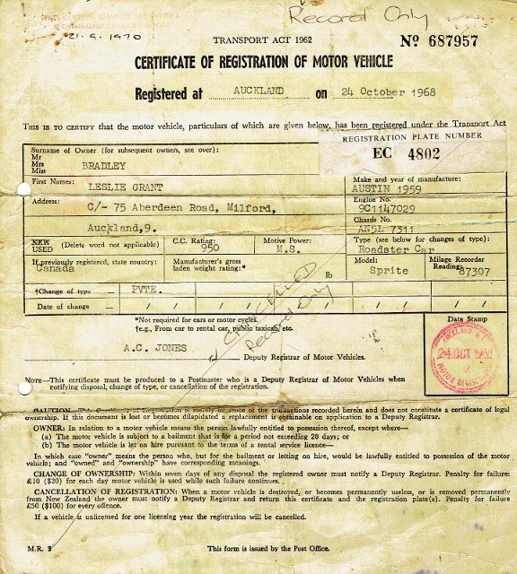 I actually have the Original Papers, with all those names on !! Ross Hollings the last NZ owner sent them to me..