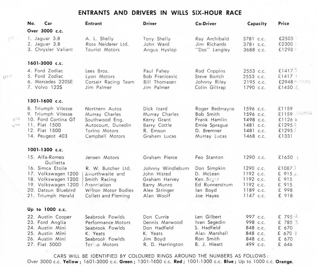 I don't have entry list for 1966 - only the Supplementary Regulations in a booklet the same as the Programme in style.