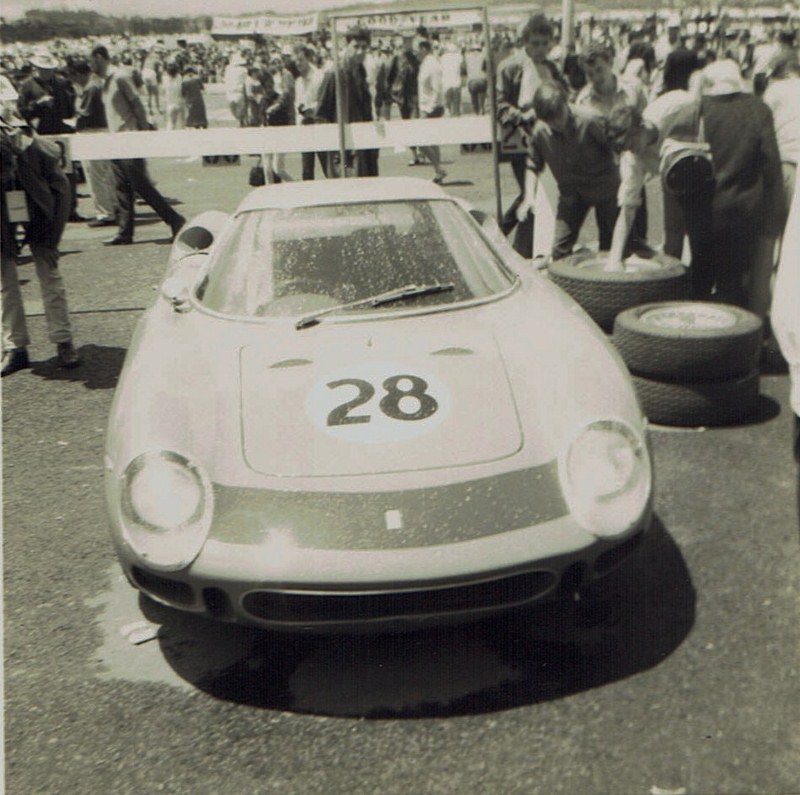 The Morrari known as " The Monster " still on the Borrani Wire Wheels off the Ferrari. so 1965, again,