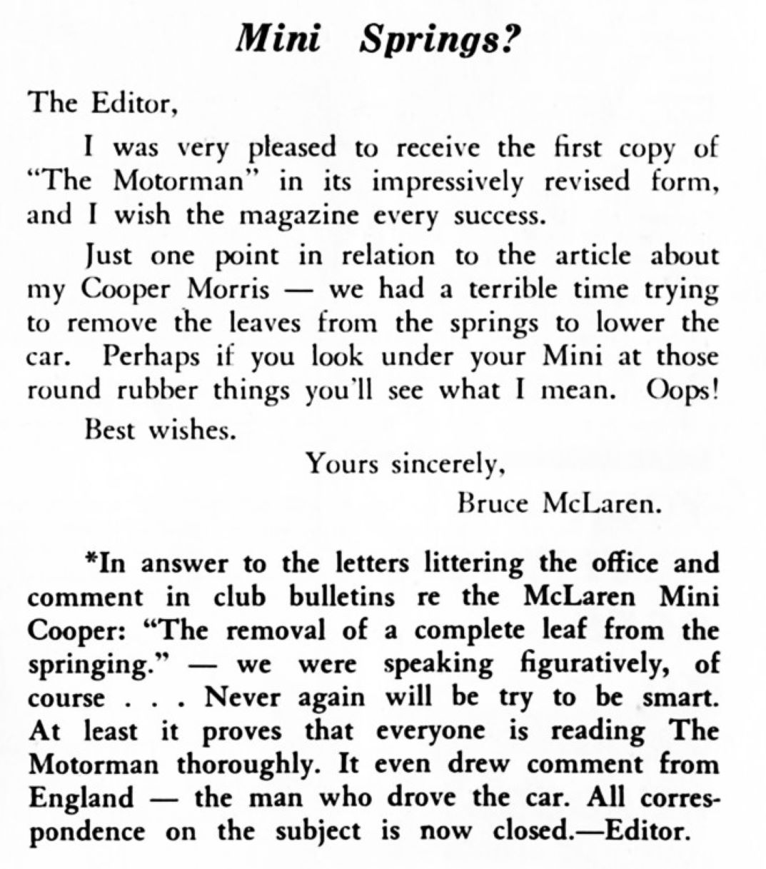 For those of us who know Mini's, from the 1960's onwards, comment does not seem right.