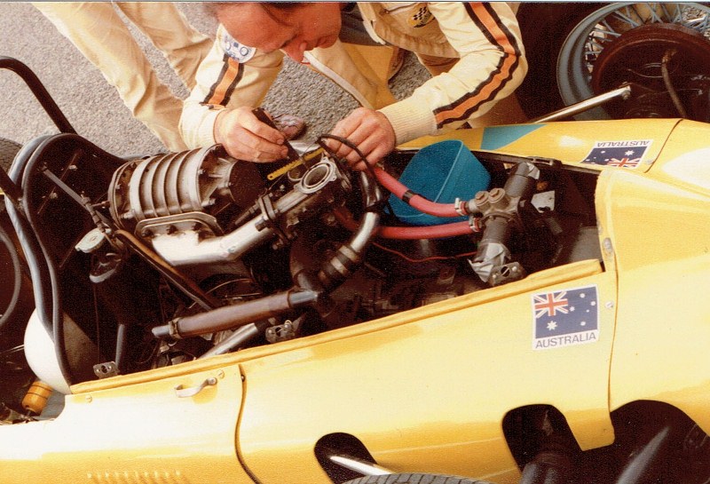 Working on Franks Car at the Motel before race day -after practice , Frank and Lyle Chambers, who had the BSA Special -mentioned in this thread #582/3 and 4.