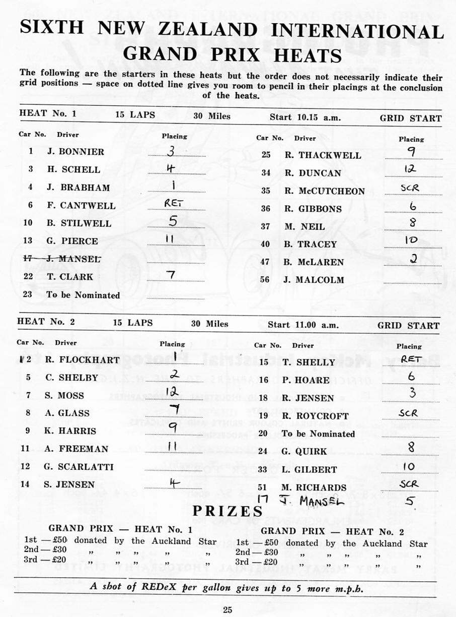 The Grand Prix had two Heat's of which the first 10 cars qualified for the Grand Prix.