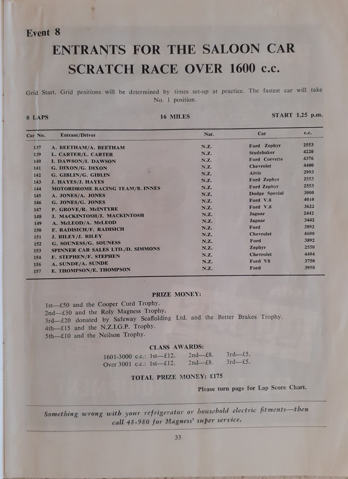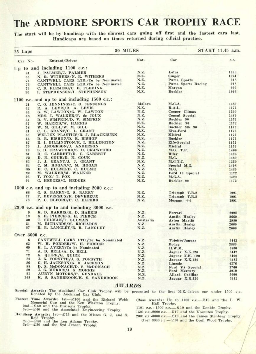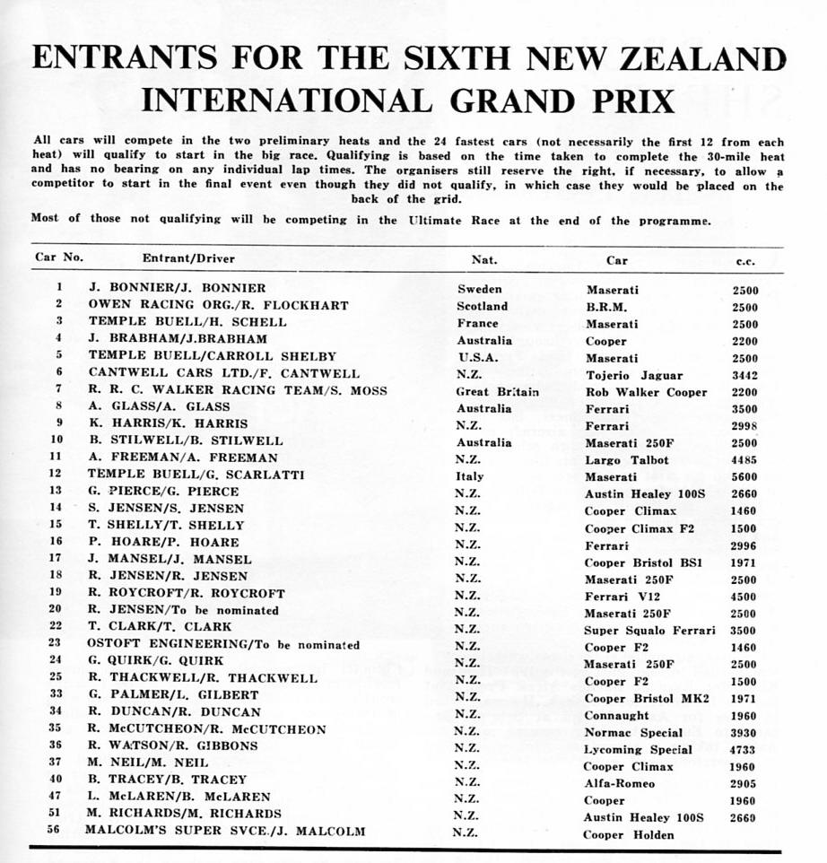 The New Zealand International Grand Prix Entry List.