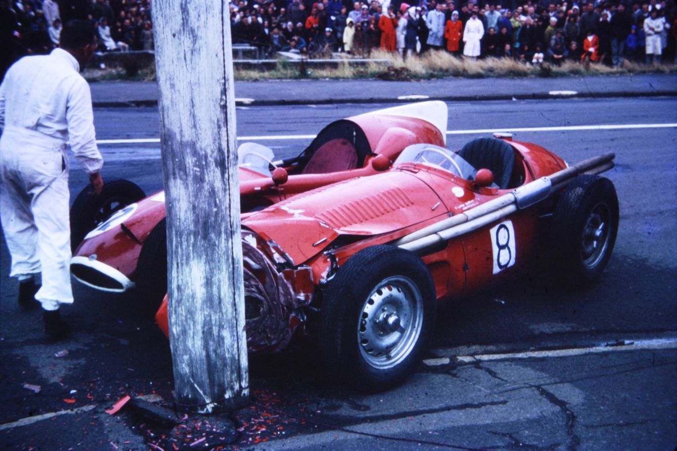 Chris Amon had a bad crash at Dunedin in 1962. Here in practice - AD archives