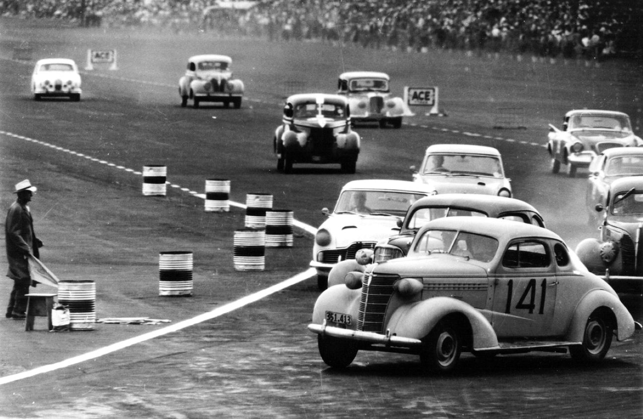 There were only two fields of cars and two main events, the Ardmore Handicap and the Grand Prix, the GP had two heats and the main race was 210 miles, 100 laps of the Airfield Circuit.