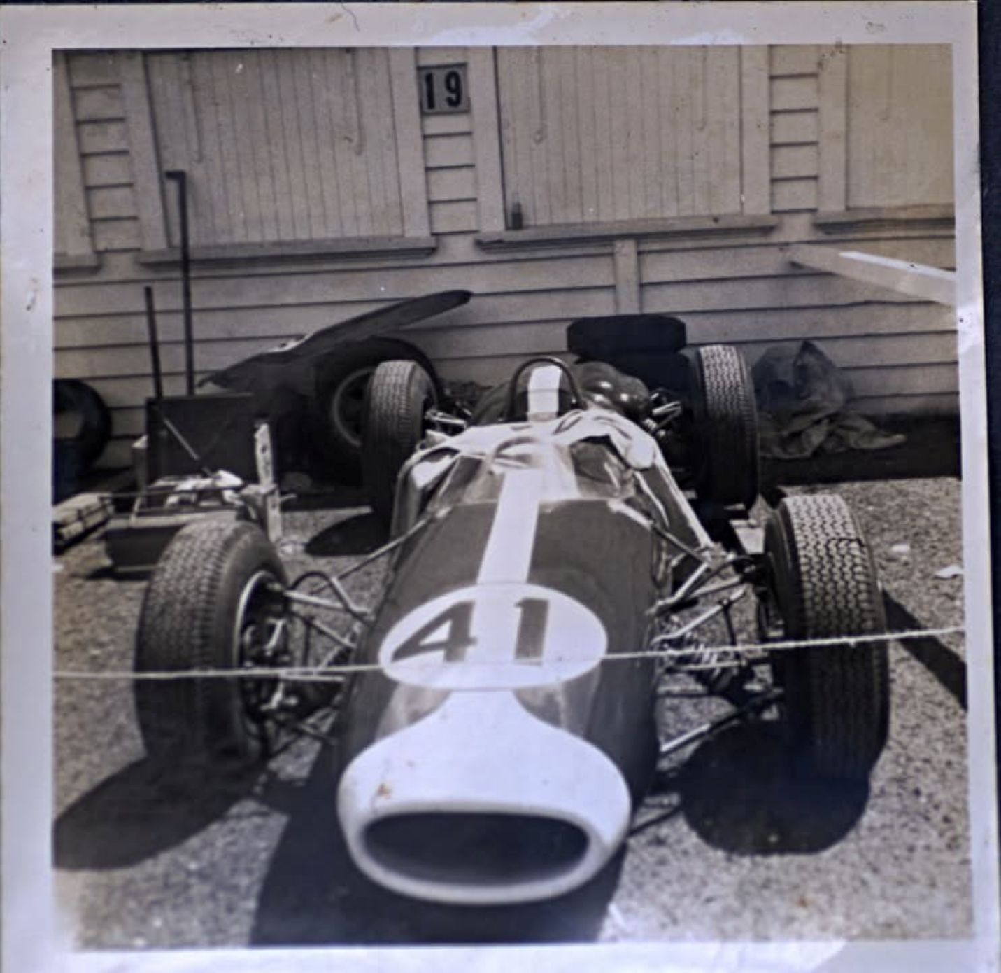 He wrote " Interesting because I don't remember going out there in '64. I think the next meeting I went to was the Rothmans National Motor Race Meeting on Feb 27th 1965. The one with the vintage car event. Also interesting, I've since found a second picture of the car at Ross Jensen's which clearly shows it with a yellow and black number plate. It was never printed because it was a double image. I didn't know the picture existed until last week. So the pictures I posted could have been taken a year apart or longer. Funny that's not how I remember it. I remember having a newspaper clipping of the car when it arrived in NZ. Must see if I can find it. "