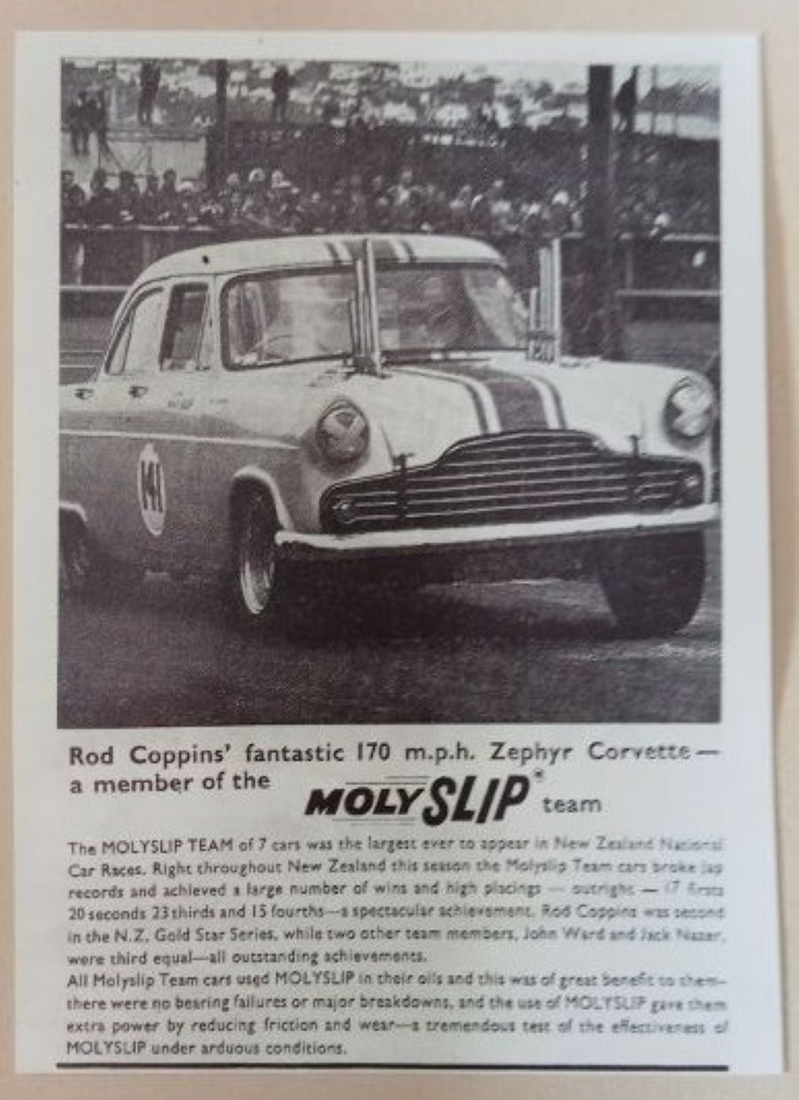 Steve Elliott, recently posted an Advert for " Molyslip " an engine additive which featured the Rod Coppins Zephyr Corvette in it White / Ivory with Blue Stripes Colours, before it went to a Burgundy.