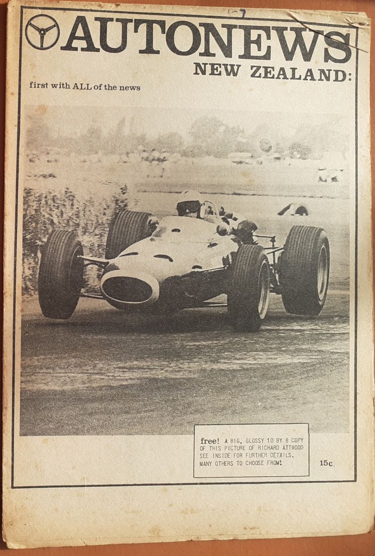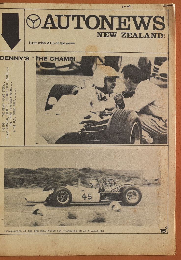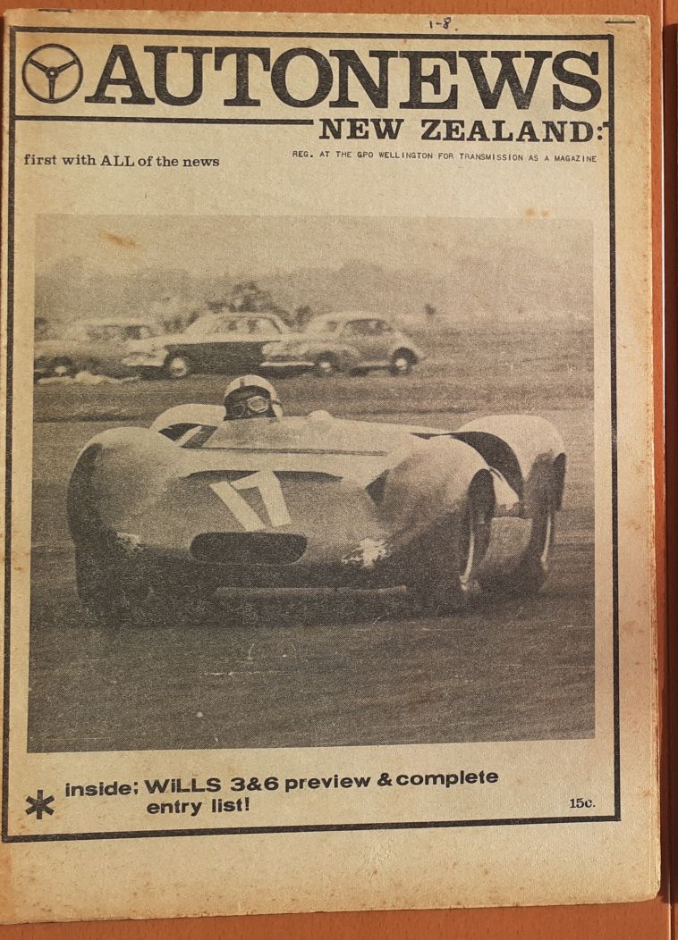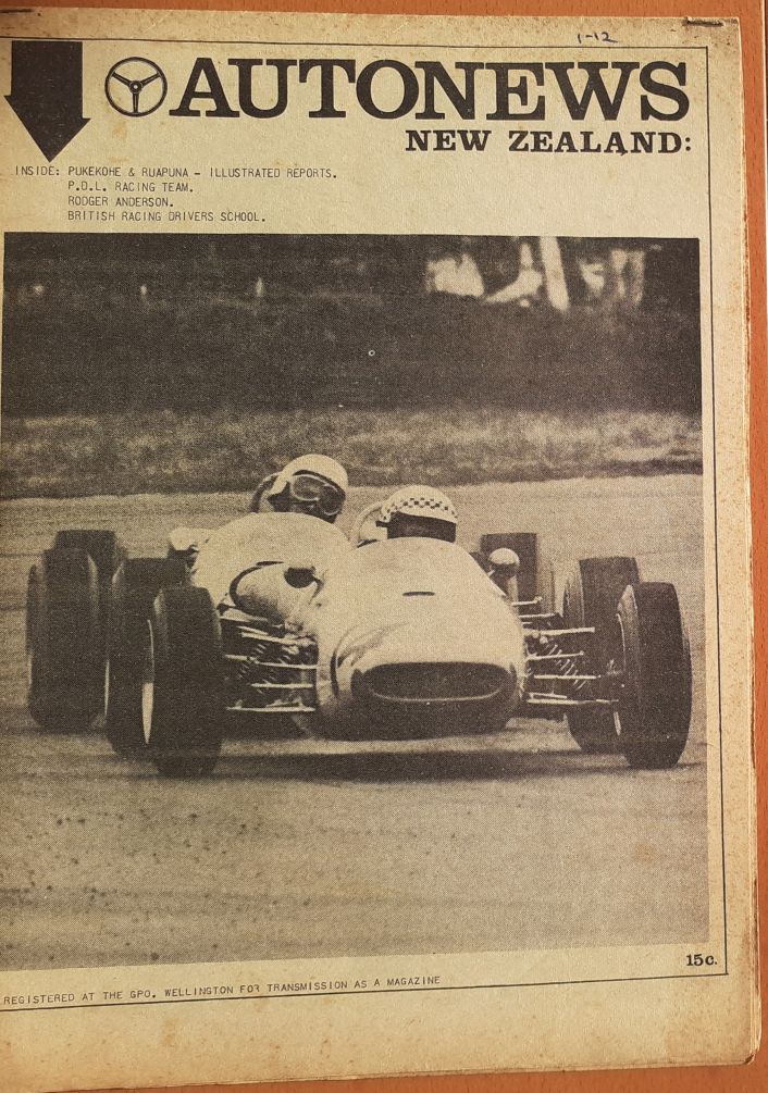 " You were right about the Pukekohe picture being 1964, it was the day of the 1964 Wills race, Saturday 10th October. Narrowed down the Ross Jensen's picture to sometime between April 6th and 10th 1964 the date the Auckland Herald printed the attached article [the Ross Jensen's picture was taken only a week or so after the article] and mid-1964 when the rego plates changed from yellow and black to silver and black. They were yellow and black in the Ross Jensen's picture. "