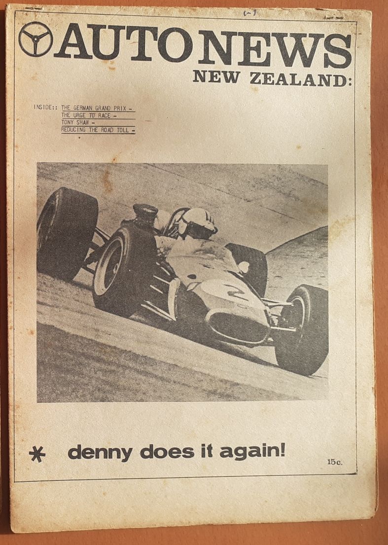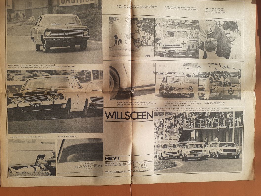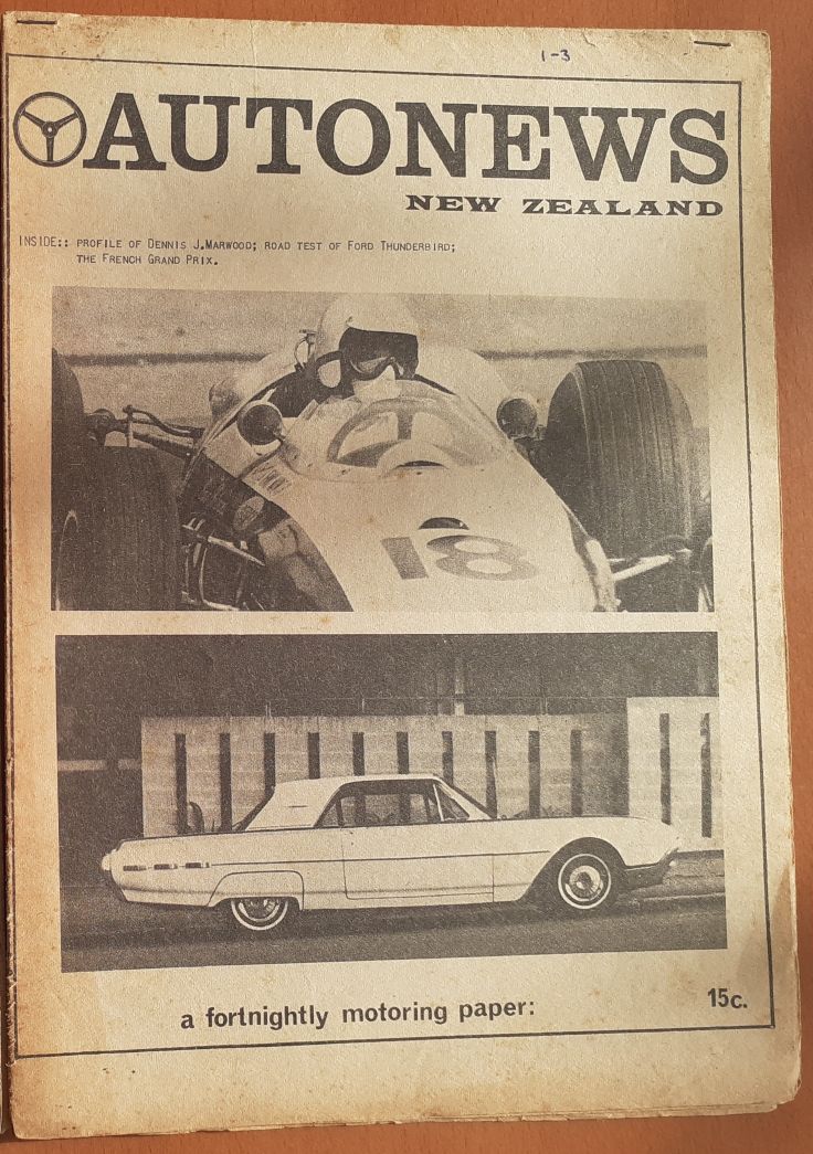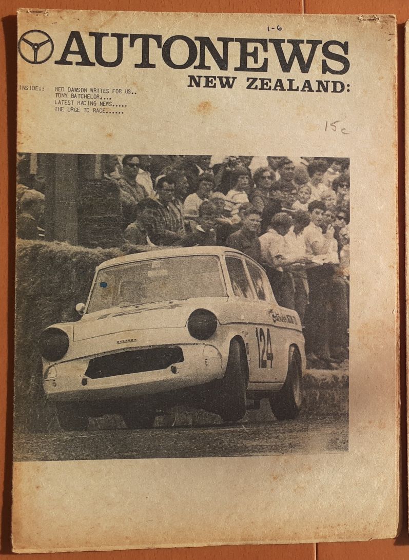 " You were right about the Pukekohe picture being 1964, it was the day of the 1964 Wills race, Saturday 10th October. Narrowed down the Ross Jensen's picture to sometime between April 6th and 10th 1964 the date the Auckland Herald printed the attached article [the Ross Jensen's picture was taken only a week or so after the article] and mid-1964 when the rego plates changed from yellow and black to silver and black. They were yellow and black in the Ross Jensen's picture. "