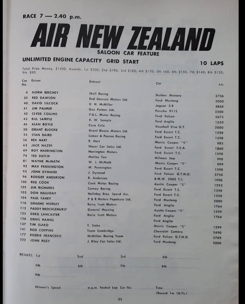 Was not there, these are from Allan Dick of " Autonews ", " NZ Classic Driver " publications, both of which he started.