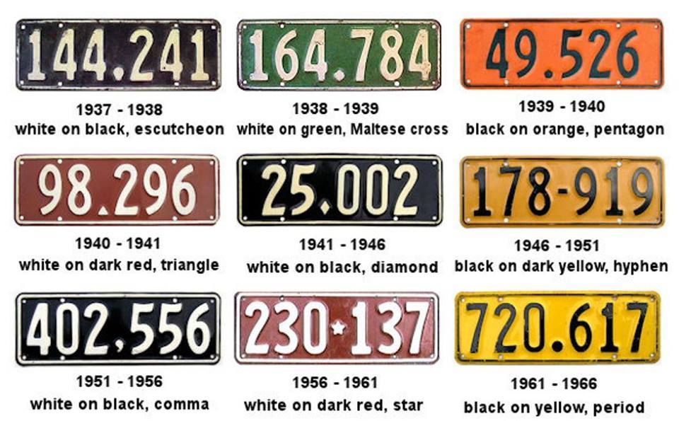 " Until 1941, New Plates were issued every year, In 1941 due to steel shortages caused by WWII the period was increased to 5 yearly until the last issue in 1961. The dates I've noted elsewhere of when plates were replaced with Permanent plates which stayed on the vehicle until it was de-registered or replaced with a personalised plate. If a Personalised plate is removed the vehicle is often re-registered with a new issue permanent plate, in some instance's the original permanent plate may be able to re-issued "