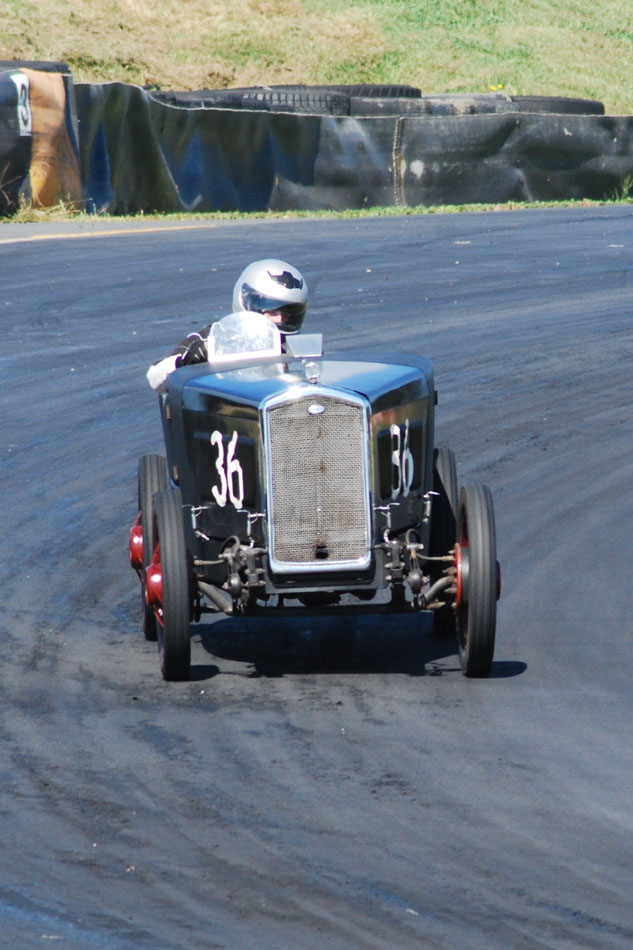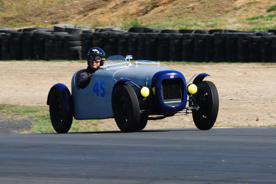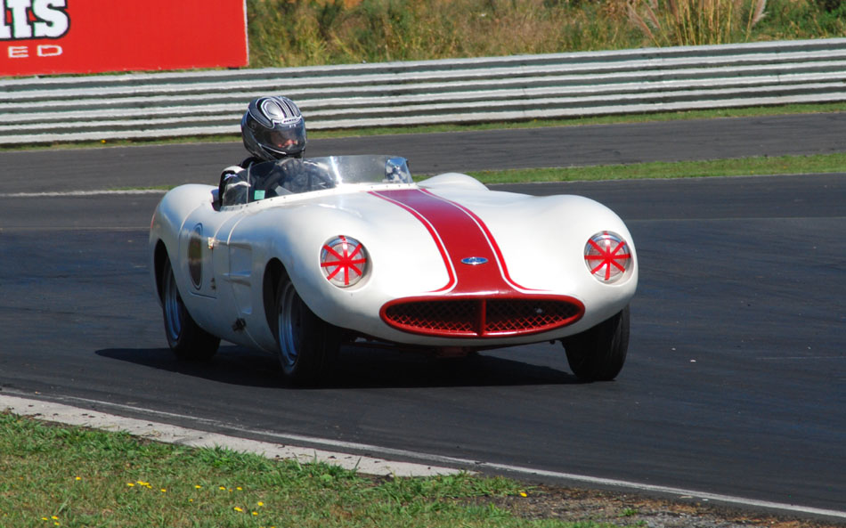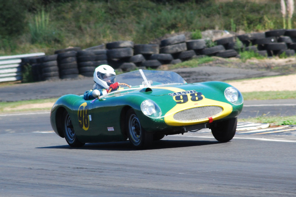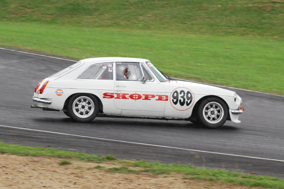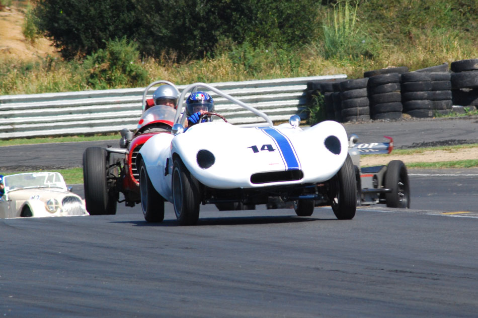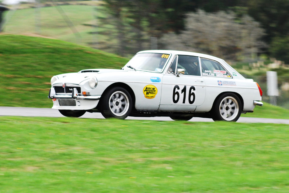 Great maiden win for Dave Mallin in the MGB V8, formerly raced in the series by Harley Norager. Yes, this is a genuine MG BV8, not a repowered 4 cylinder. First time out after an engine rebuild and he promoted himself straight out of the AES Series and into the faster Arrows group for tomorrow! Sadly, Adrian in a repowered MG BV8, went off the track during the first Arrows practice and clouted the wall at turn 1 pretty hard.