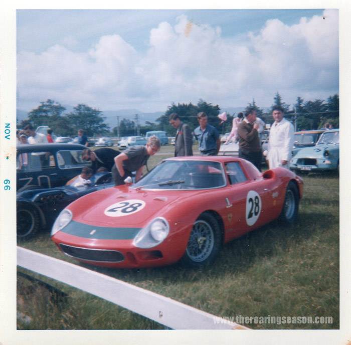 Here is the beautiful Ferrari 250LM of Andy Buchanan at Levin. Can anyone ID the cars around it? Is that Bob Homewoods blue Anglia on right of shot?