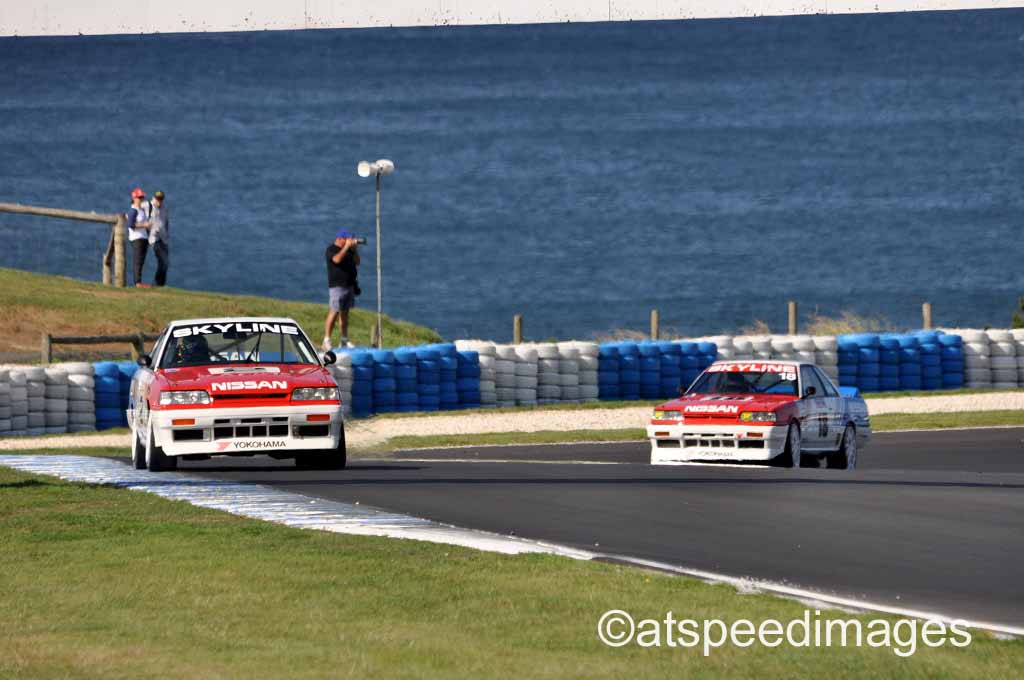 Group C and Group A historic touring cars ran together as one group, with an impressive entry list, that included this pair of HR31 Nissan Skylines, one of my all-time favourite Group A cars. I'd forgotten what a shrill their turbo-6 motors made back when they were current, but was reminded at a historic event at Eastern Creek a few years ago. What a sound! Three HR31s were at the 2013 Phillip Island Classic.